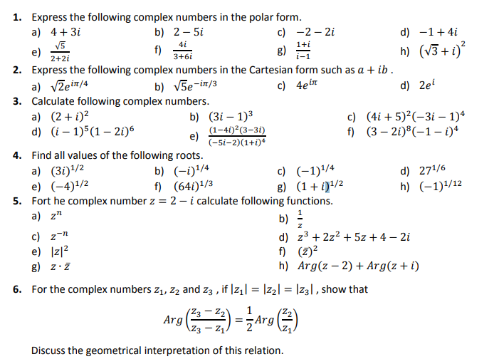 Solved 1+i 4i 3+6i 2+2 i c) 4e in 1. Express the following