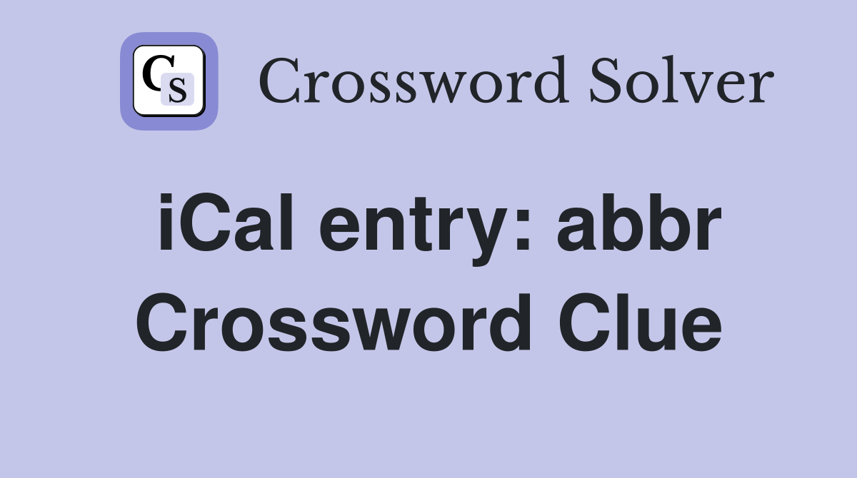 iCal entry abbr. Crossword Clue Answers Crossword Solver