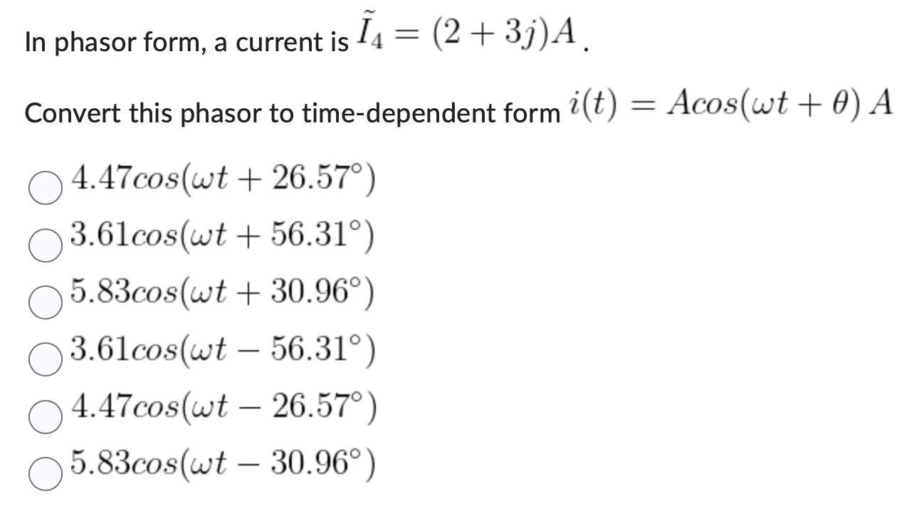 Solved In phasor form, a current is I4=(2+3j)A. Convert