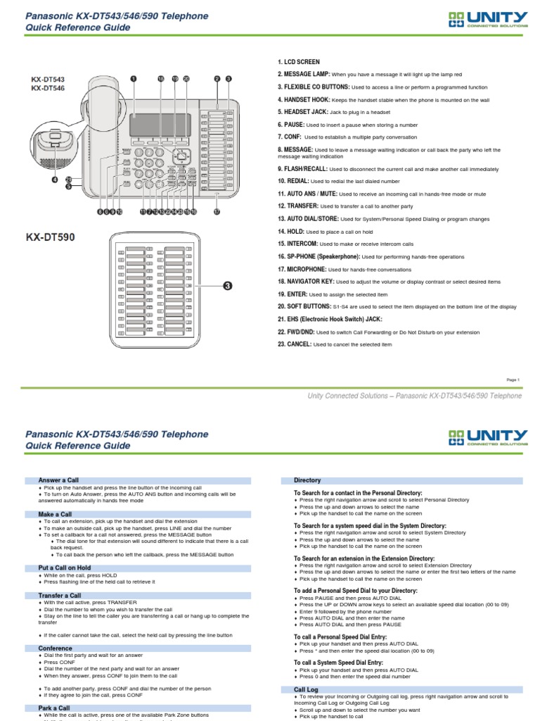 Panasonic Kxdt543 Manual